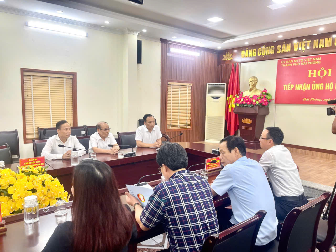 Ông Đào Trọng Đức - Chủ tịch Ủy ban MTTQ Việt Nam TP Hải Phòng đã tiếp nhận số tiền ủng hộ từ Ông Nguyễn Xuân Trường – Tổng giám đốc Công ty CP Xây dựng Bất động Sản Việt Phát.
