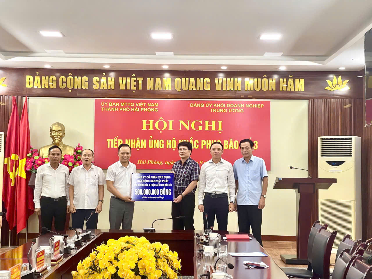Trước đó, Ngày 16/9/2024 tại Uỷ ban Trung ương Mặt trận Tổ quốc Việt Nam Thành phố Hải Phòng, Công ty cổ phẩn xây dựng bất động sản Việt Phát cũng đã trao tặng 500 triệu đồng ủng hộ khắc phục bão số 3.
