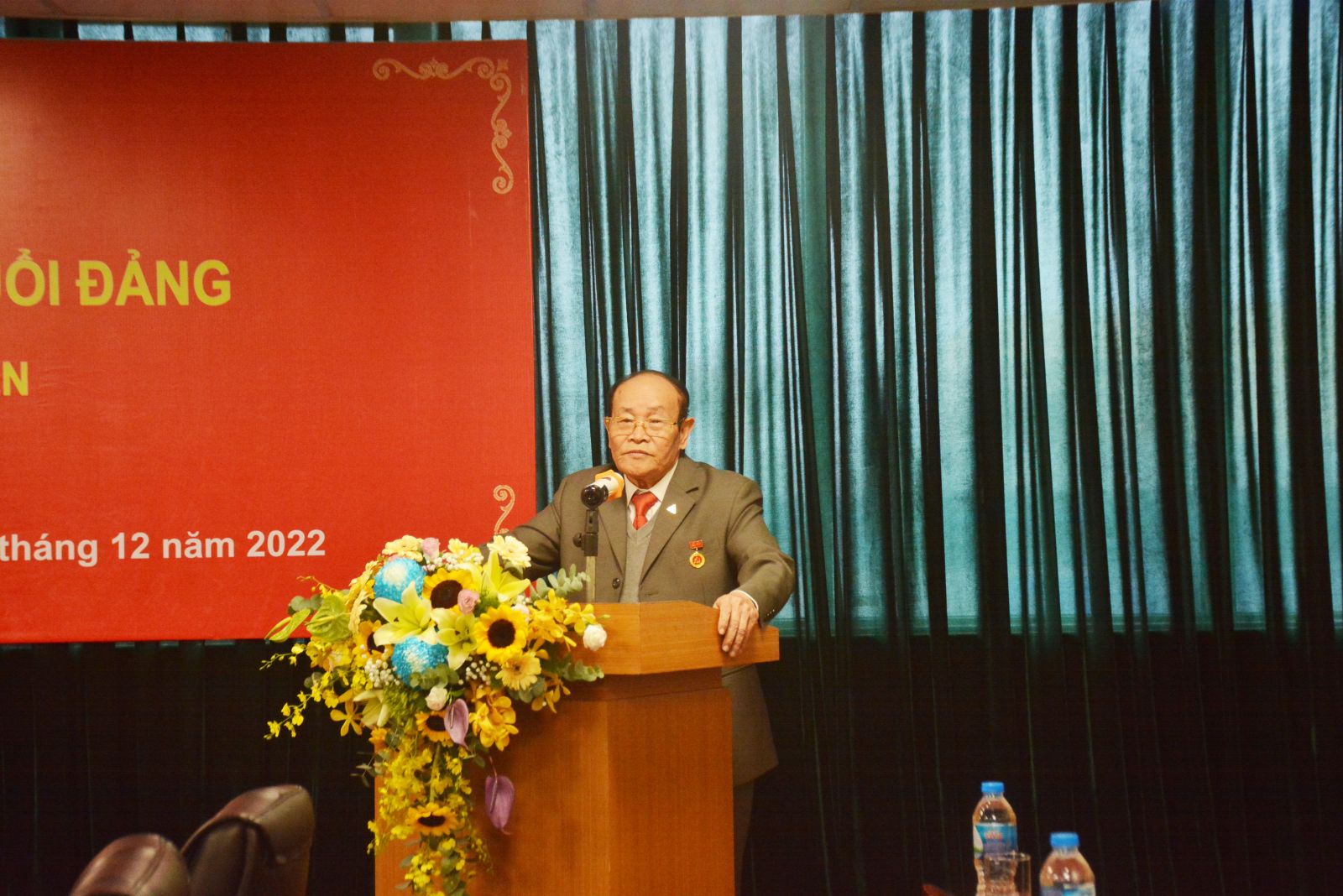 Tại buổi lễ Đồng chí Cao Thị Thanh Xuân ủy viên ban thường vụ đã trao Huy hiệu 40 năm tuổi đảng cho đồng chí Hồ Thế Khiên.
