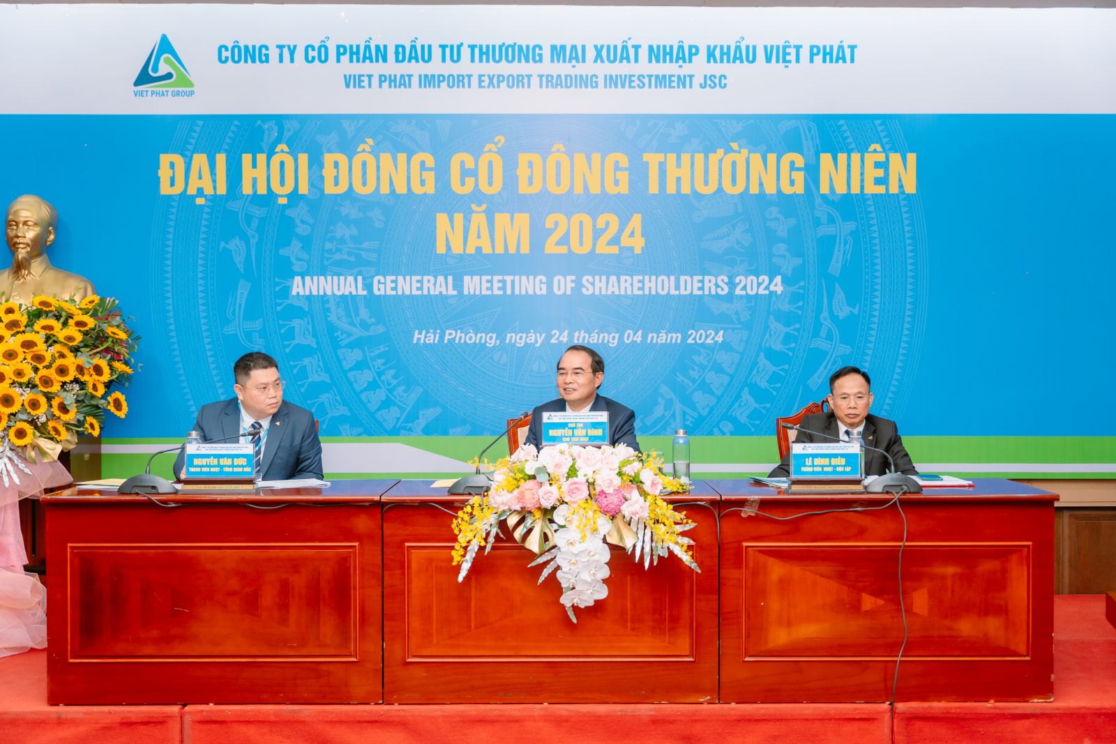 Sáng 24/4/2024 tại Trung tâm hội nghị thành phố, Công ty cổ phần Đầu tư Thương mại Xuất nhập khẩu Việt Phát (Mã CK: VPG) tổ chức Đại hội đồng cổ đông thường niên năm 2024. Đại hội đã thông qua báo cáo tổng kết hoạt động năm 2023, kế hoạch sản xuất kinh doanh năm 2024 và các nội dung quan trọng khác.